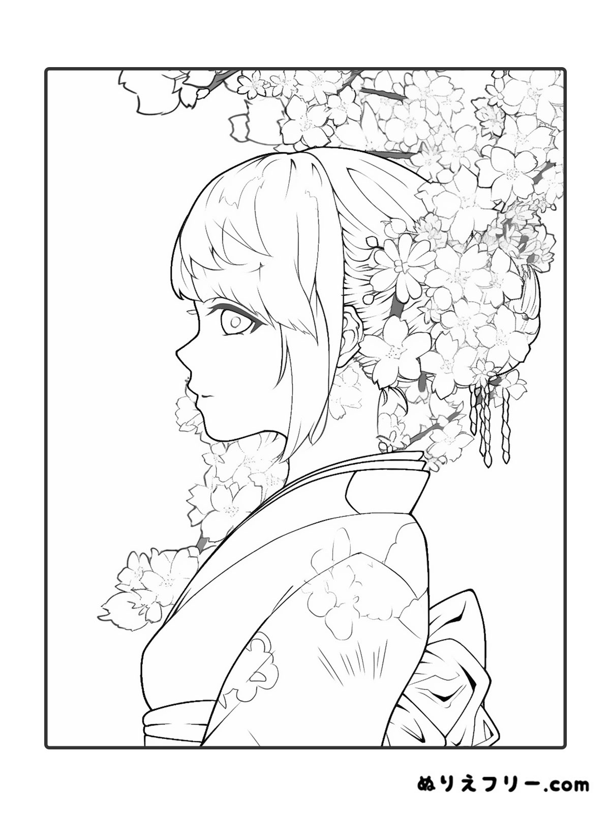 ひまわり畑と女性の塗り絵