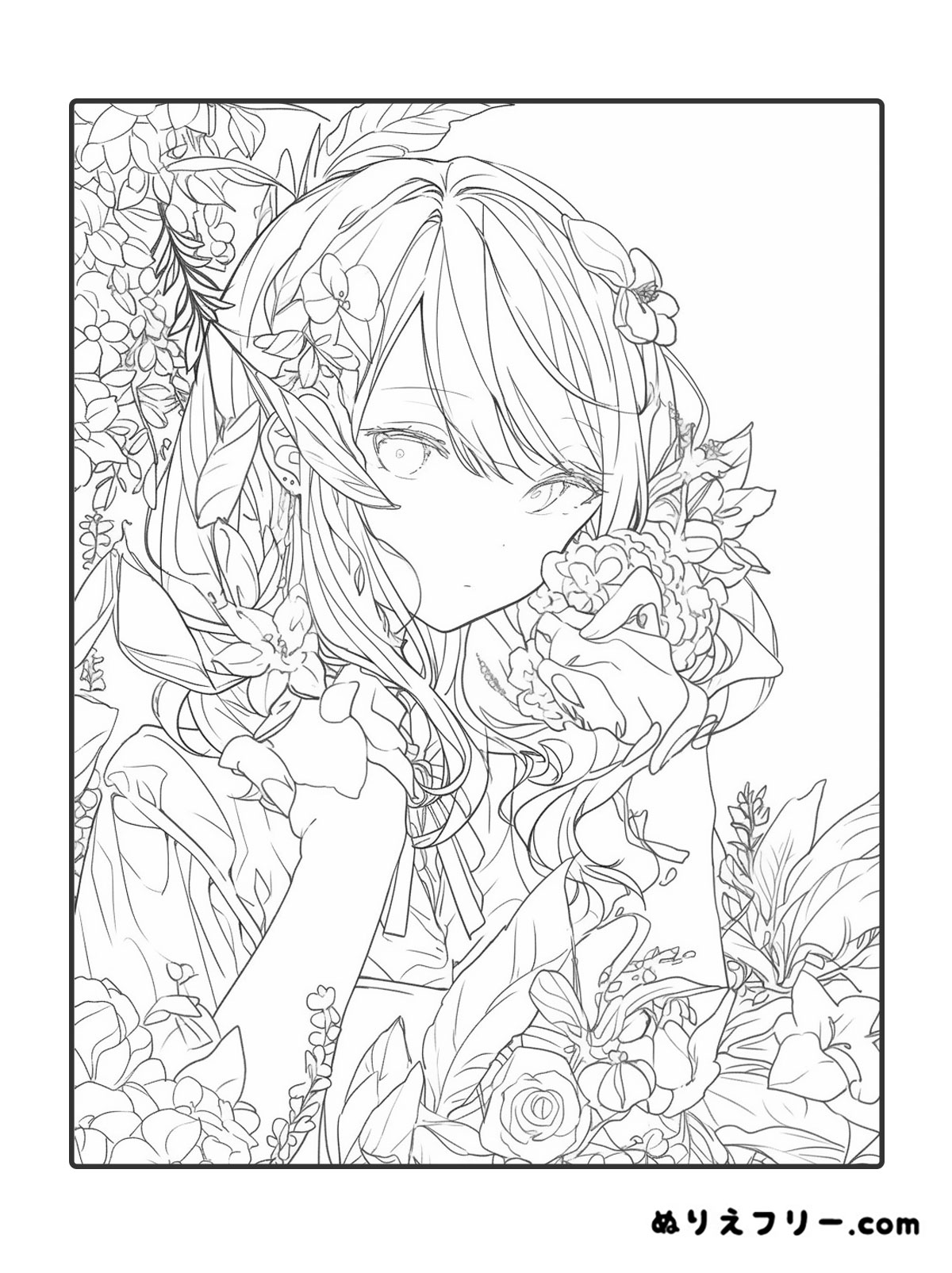 ひまわり畑と女性の塗り絵